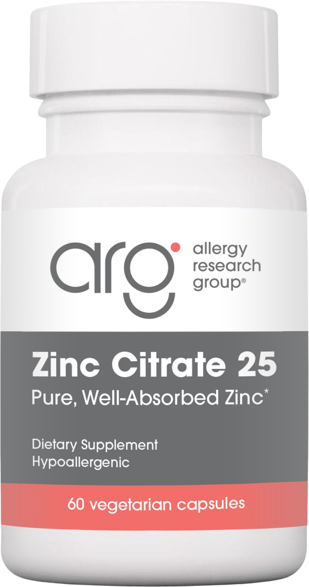 Allergy Research Group® Citrato de Zinco 25mg, 60 Cápsulas vegetais