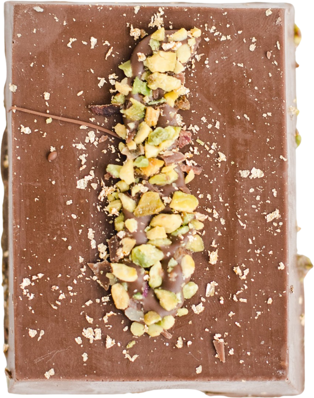 Aqui saboreia-se luxo em cada dentada: delicado chocolate de leite, recheado com um irresistível creme de pistácio e kadayif crocante. A tablete de chocolate é refinada com ouro verdadeiro. A receita não contém corantes nem aromas artificiais.