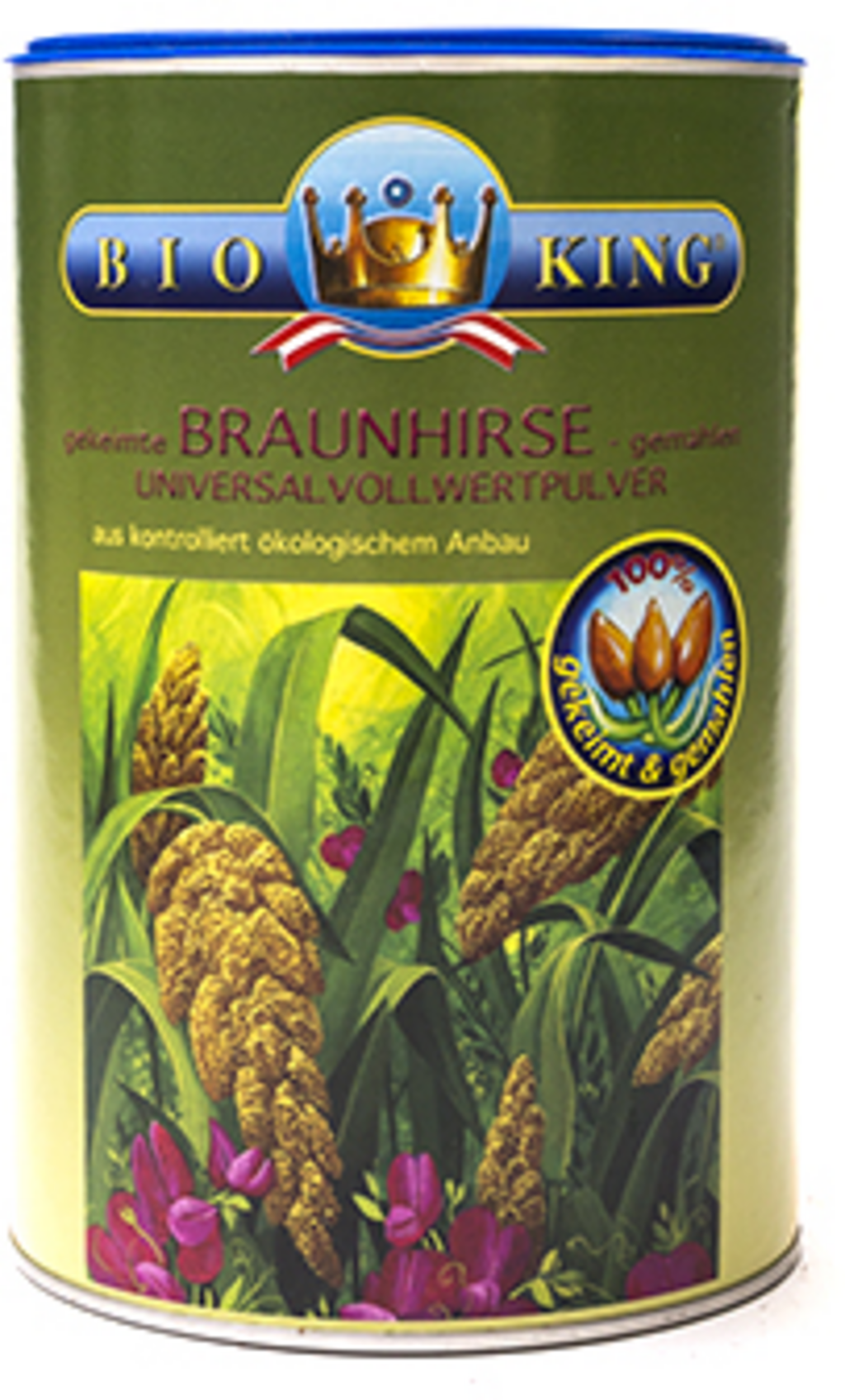 O milho-miúdo integral (braunhirse) é valorizado como suplemento alimentar desde tempos ancestrais. Por isso, também faz parte da gama de produtos da BioKing. Na variante "PLUS", o produto contém milho-miúdo 100 % germinado.