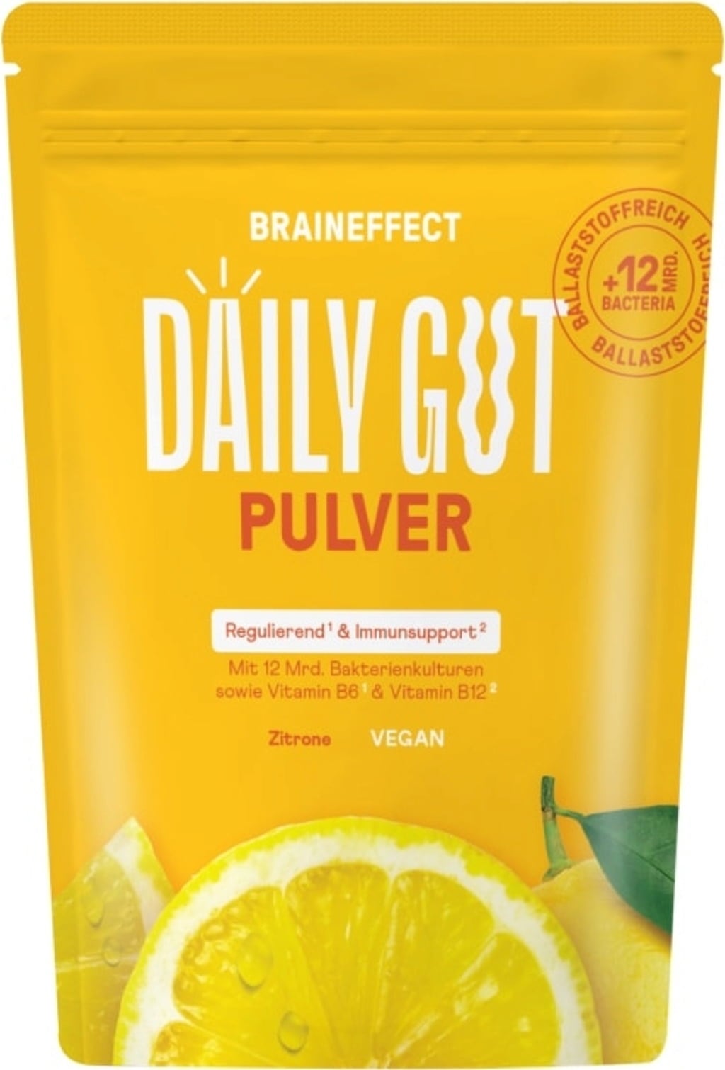 O pó DAYLY GUT da BRAINEFFECT está de volta com uma fórmula ainda melhor numa saqueta que poupa espaço. Com 12 mil milhões de culturas de bactérias vivas e 6 g de fibras por dose, é o companheiro ideal para a sua alimentação diária. A composição foi concebida com bactérias bífidas e ácido lático porque estas bactérias também ocorrem naturalmente no intestino. Além disso, é complementado com vitaminas importantes como B1, B6 e B12.