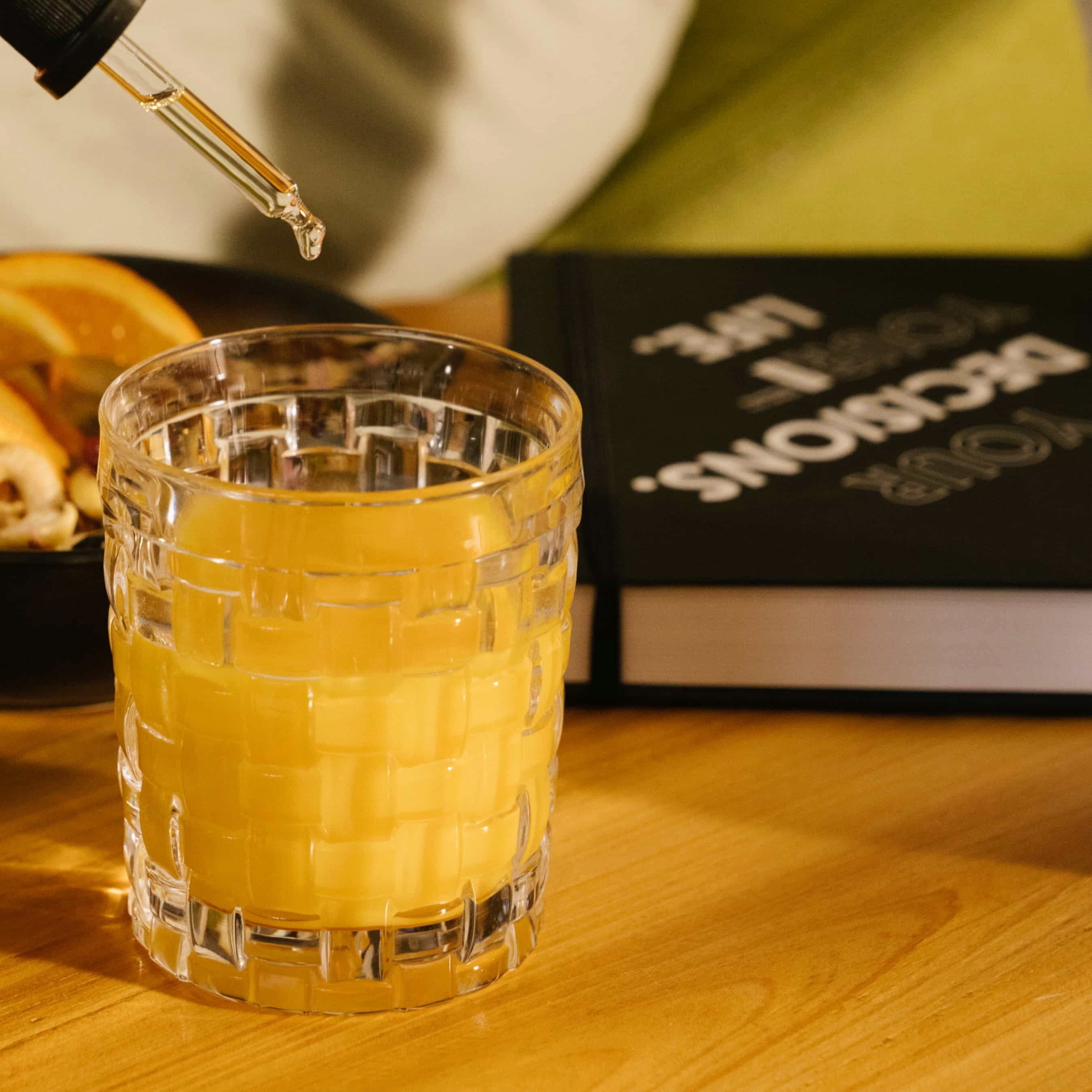 As gotas podem também ser adicionadas a smoothies, iogurte ou muesli.