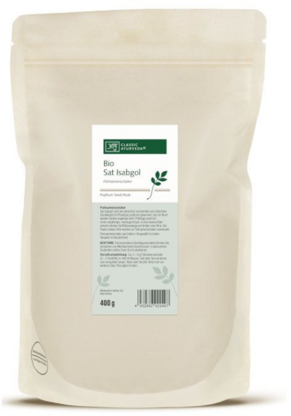 Estas cascas de psyllium (Sat Isabgol) são compostas a 100% por fibras da tanchagem indiana (Plantago psyllium), cultivada no noroeste da Índia. O produto caracteriza-se por um teor de fibras superior a 80% e constitui uma fonte concentrada de fibras solúveis na alimentação diária. As cascas são obtidas a partir de uma planta anual e processadas no âmbito de uma agricultura biológica controlada. Representam um complemento natural para a cozinha ayurvédica e podem ser integradas de forma versátil em alimentos ou bebidas.