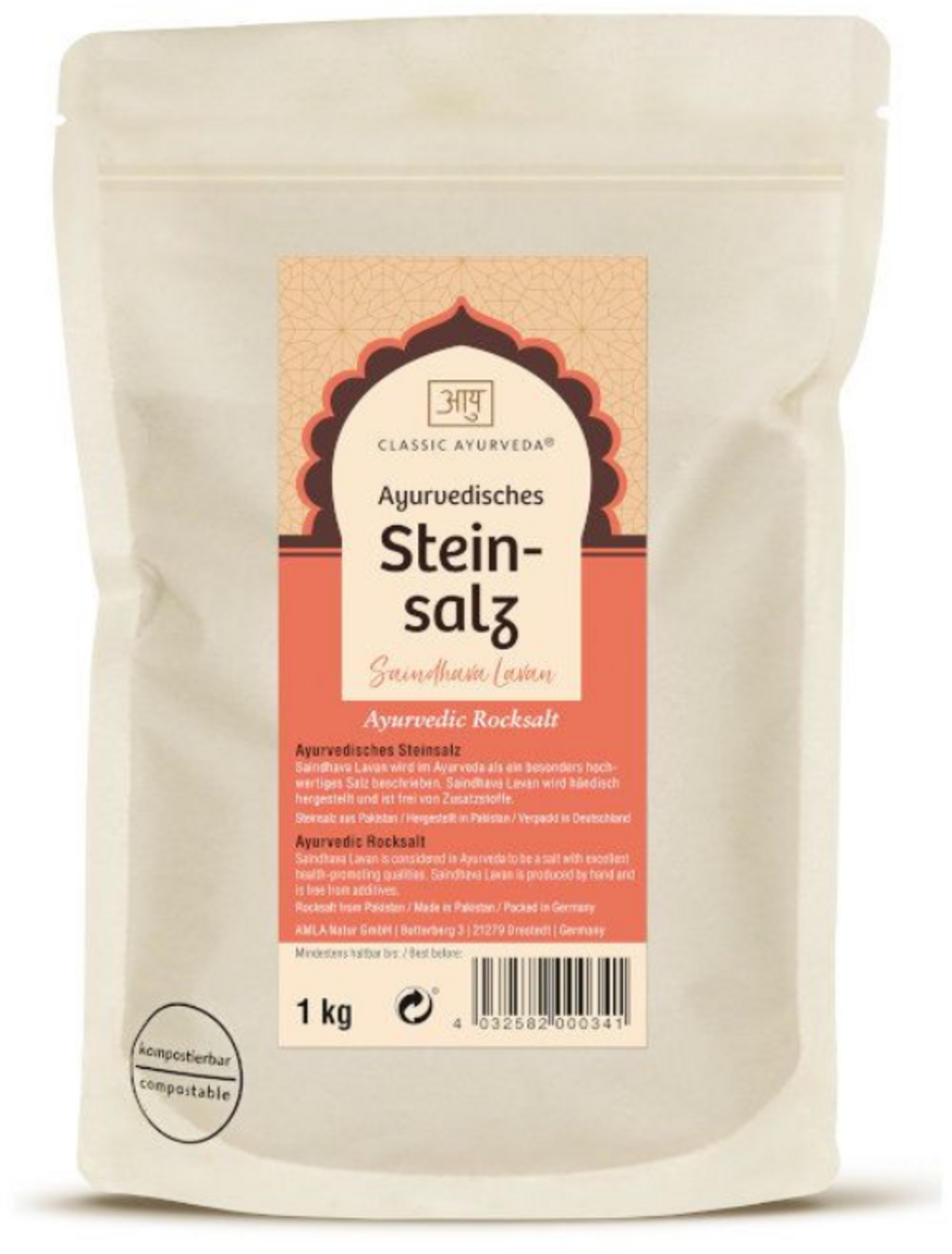 Saindhava Lavan é um sal-gema ayurvédico clássico, extraído por via mineira. Ao contrário do sal evaporado convencional, é extraído manualmente, não sendo sujeito a detonações nem a processos de refinação. Graças a este método de extração cuidadoso, preservam-se os componentes naturais do cristal de sal original, bem como os oligoelementos, o que se reflete também na coloração ligeiramente acinzentada do sal mineral moído. O produto é isento de agentes antiaglomerantes artificiais ou de outros aditivos e constitui um componente natural para a cozinha diária.