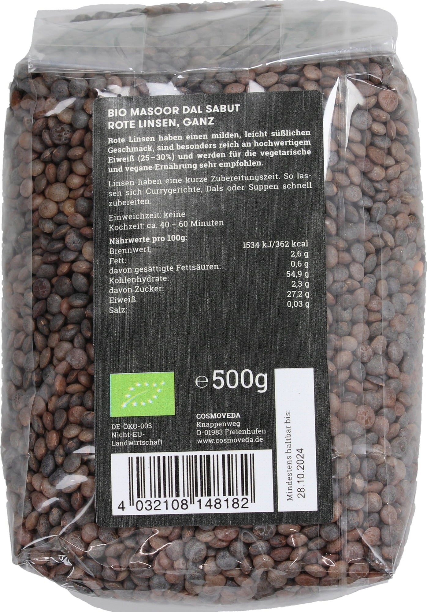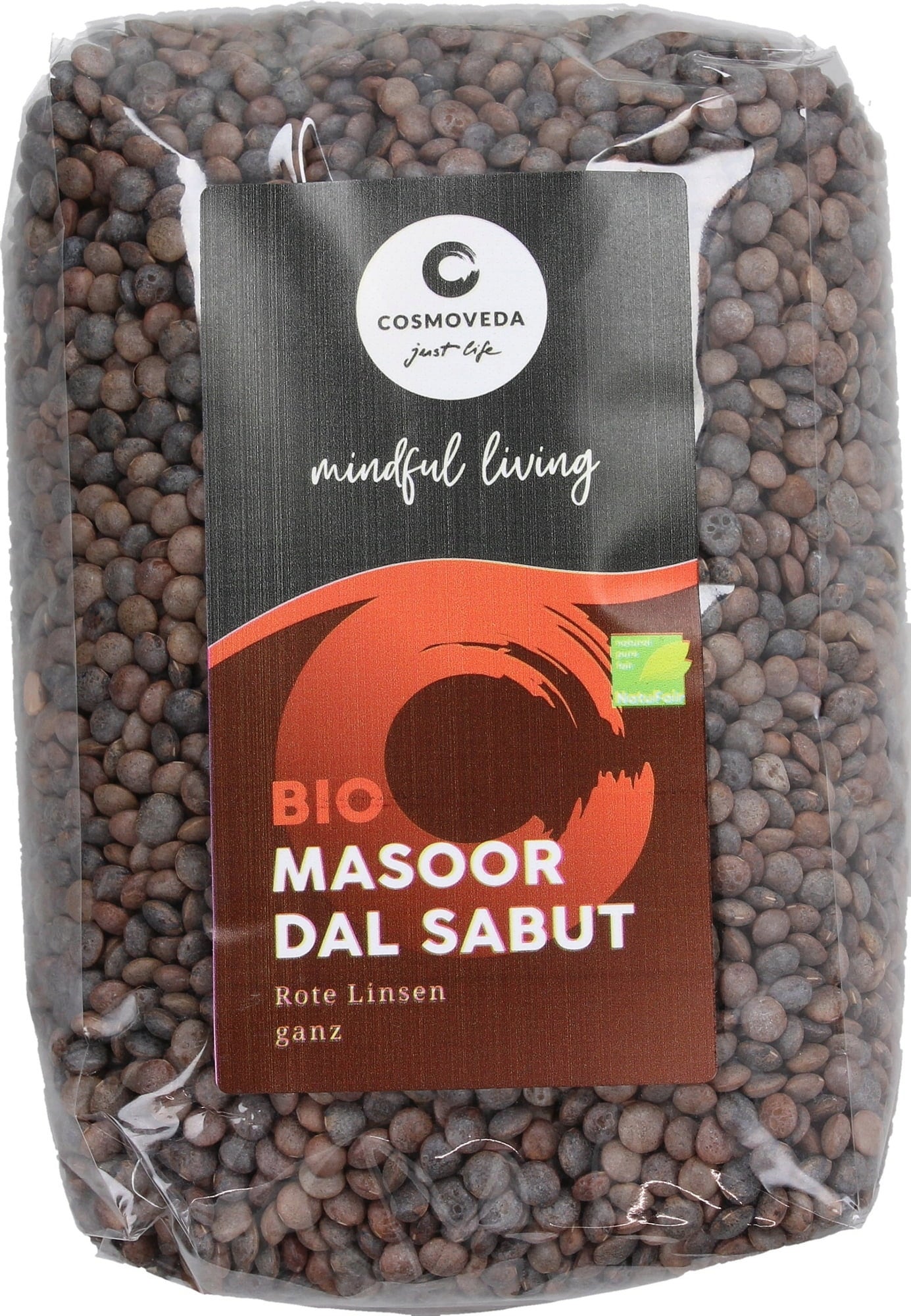 Cosmoveda Masoor Dal Sabut – Lentilhas vermelhas inteiras Bio, 500 g