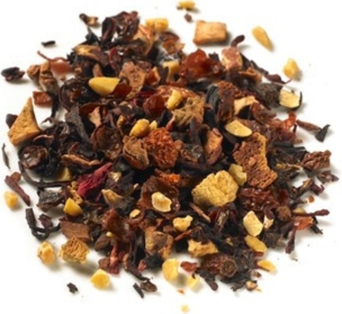 Casca de cinórrodo de rosa canina, Flores de hibisco, Fatias de maçã, Casca de laranja, Canela, Aroma, Pedaços de baunilha
