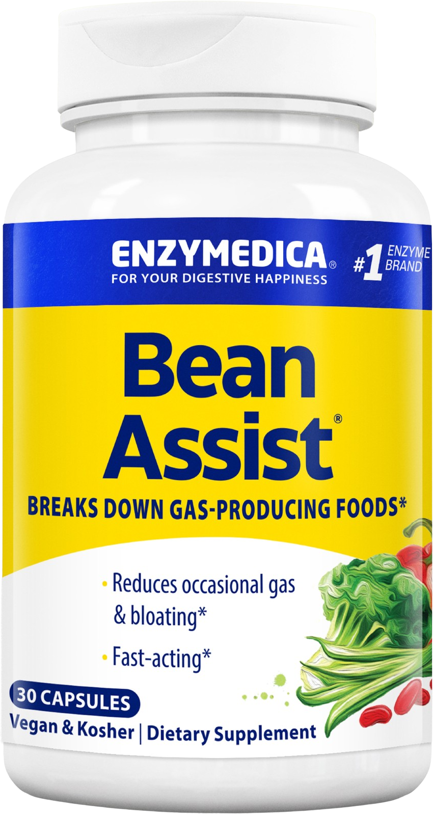 O Enzymedica BeanAssist® oferece uma solução direcionada para a incorporação de alimentos ricos em fibras na sua dieta. As leguminosas, as couves e os produtos integrais contêm glúcidos e polissacáridos complexos, cuja decomposição no trato digestivo pode ser difícil. Este suplemento apoia-se na enzima especializada alfa-galactosidase. Esta enzima foi precisamente concebida para transformar estes hidratos de carbono pouco disponíveis em açúcares de estrutura mais simples. Esta atividade enzimática precisa acompanha o processo natural de utilização dos legumes e das leguminosas.