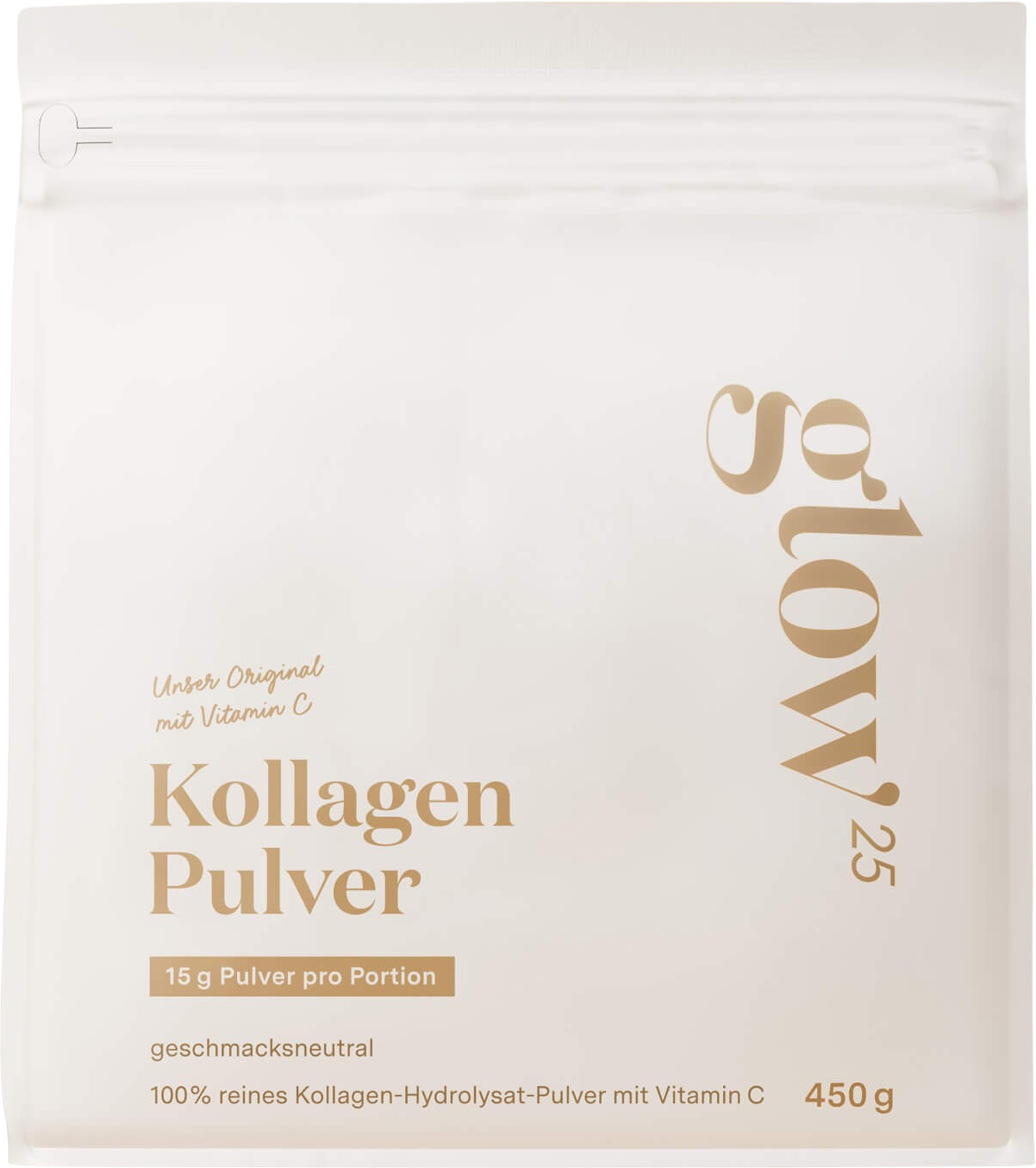 O Glow25 Kollagen Pulver oferece uma combinação de finos péptidos de colagénio e vitamina C. A vitamina C presente contribui para a formação normal de colagénio, para o normal funcionamento da pele, dos ossos e das cartilagens. Além disso, a vitamina C apoia a proteção das células contra o stress oxidativo.