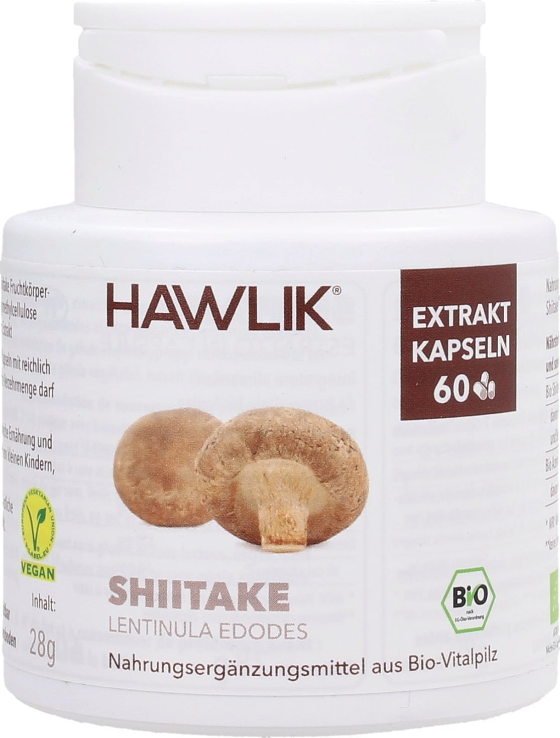 Hawlik Cápsulas de Extrato de Shiitake, Bio, 60 Cápsulas