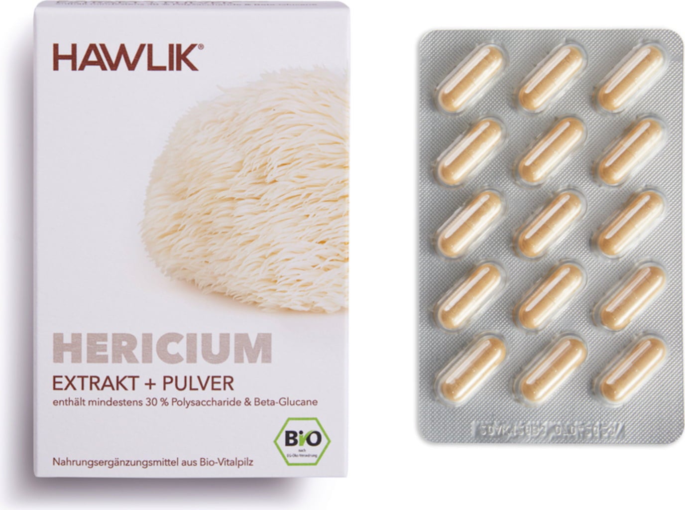 Hawlik Cápsulas de Extrato + Pó de Hericium Bio, 60 Cápsulas