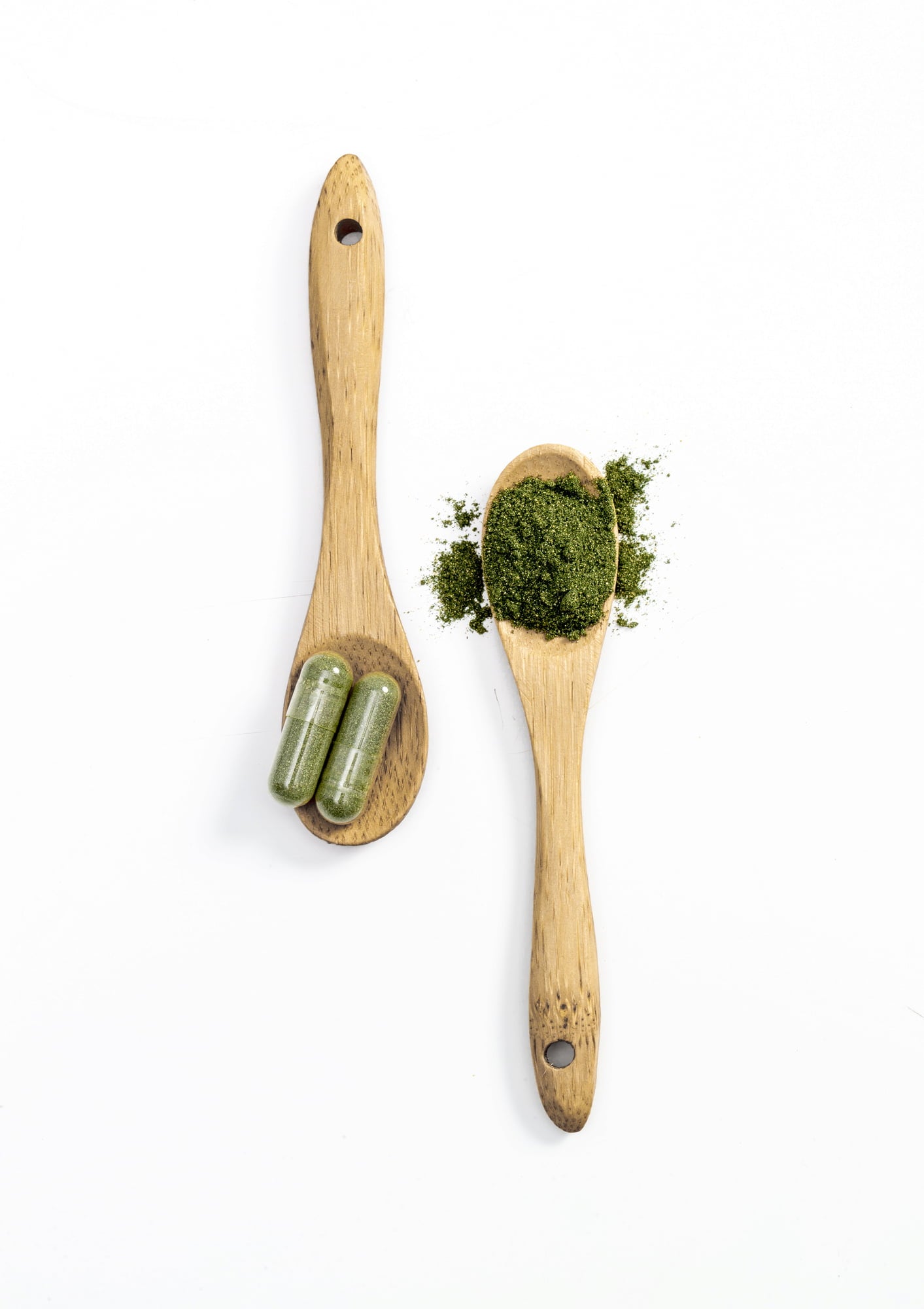 49,6 % Clorela em pó (Espermidina), 35,5 % Extrato de soja, Hidroxipropilmetilcelulose[1]