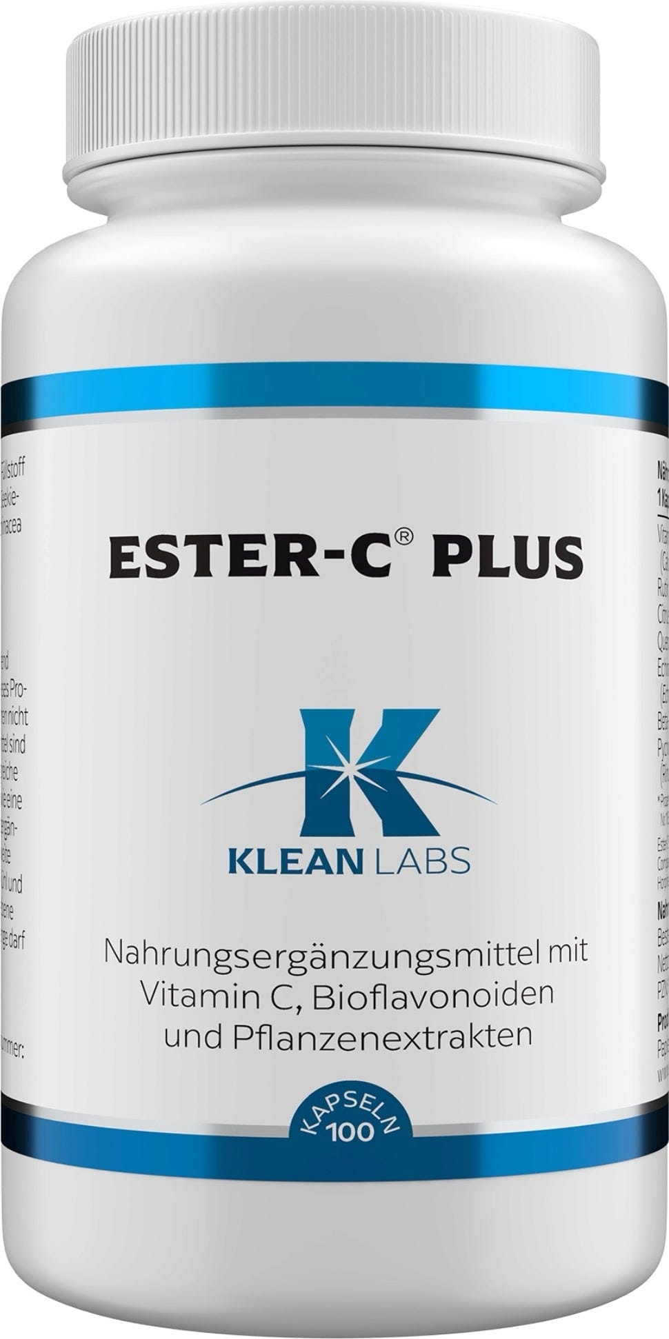 Ester-C® Plus da KLEAN LABS contém vitamina C sem ácido, obtida através de um processo de fabricação patenteado, e possui propriedades de liberação retardada para um fornecimento prolongado de até 24 horas. Além disso, as cápsulas contêm Quercetina, extrato de raiz de Equinácea, Beta-Caroteno e extrato de casca de Kelp.