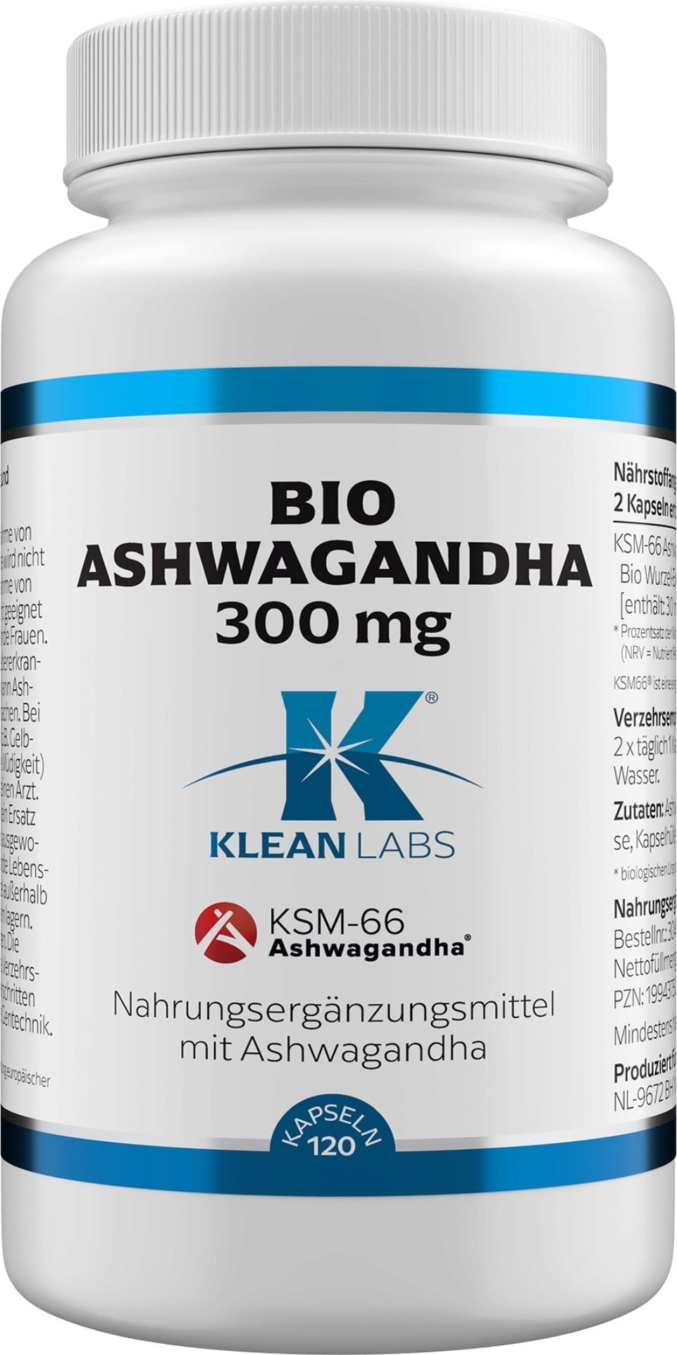 KLEAN LABS Extrato de Raiz de Ashwagandha Bio 300 mg, 120 Cápsulas