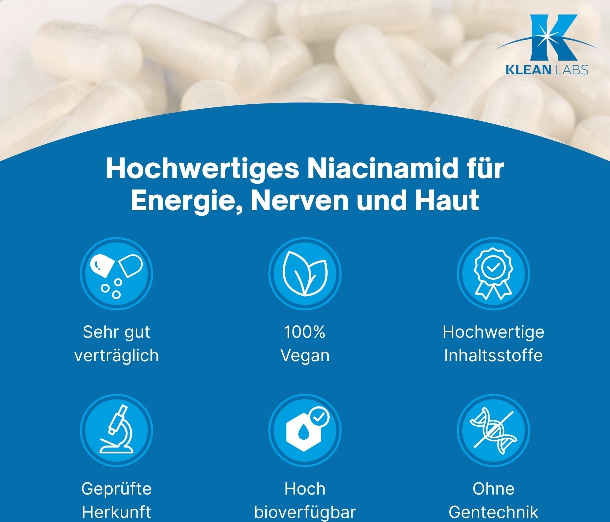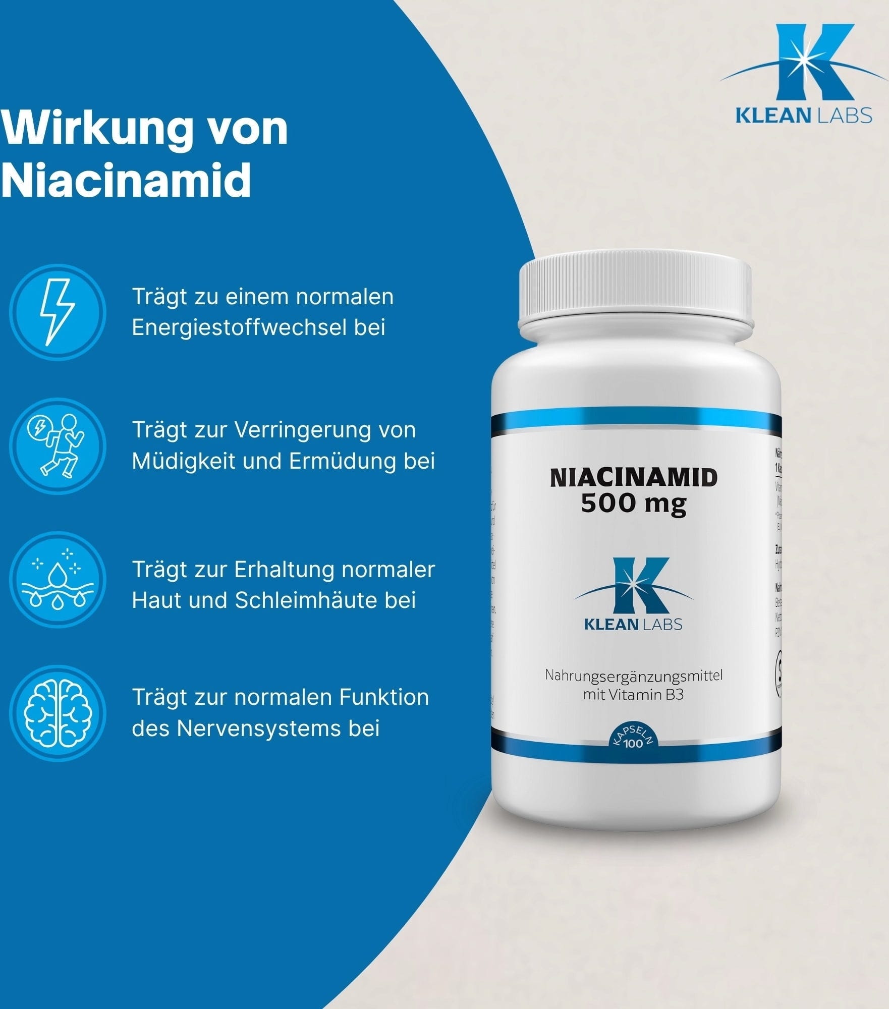 KLEAN LABS Niacinamida (B3) 500 mg, 100 Cápsulas