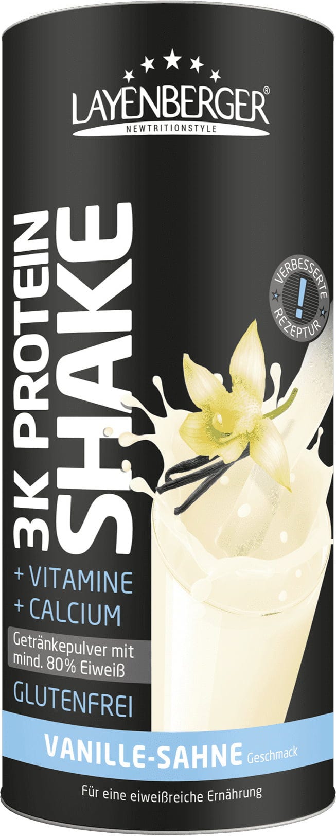 O Layenberger 3K Protein Shake combina três fontes de proteína de alta qualidade (soja, leite e proteína de soro de leite) para criar um batido cremoso com um sabor delicioso. Com mais de 79% de proteína no pó, fornece uma porção prática de proteína em água ou leite e é fácil de preparar. O pó é também enriquecido com várias vitaminas e cálcio e contém L-carnitina (Carnipure®).
