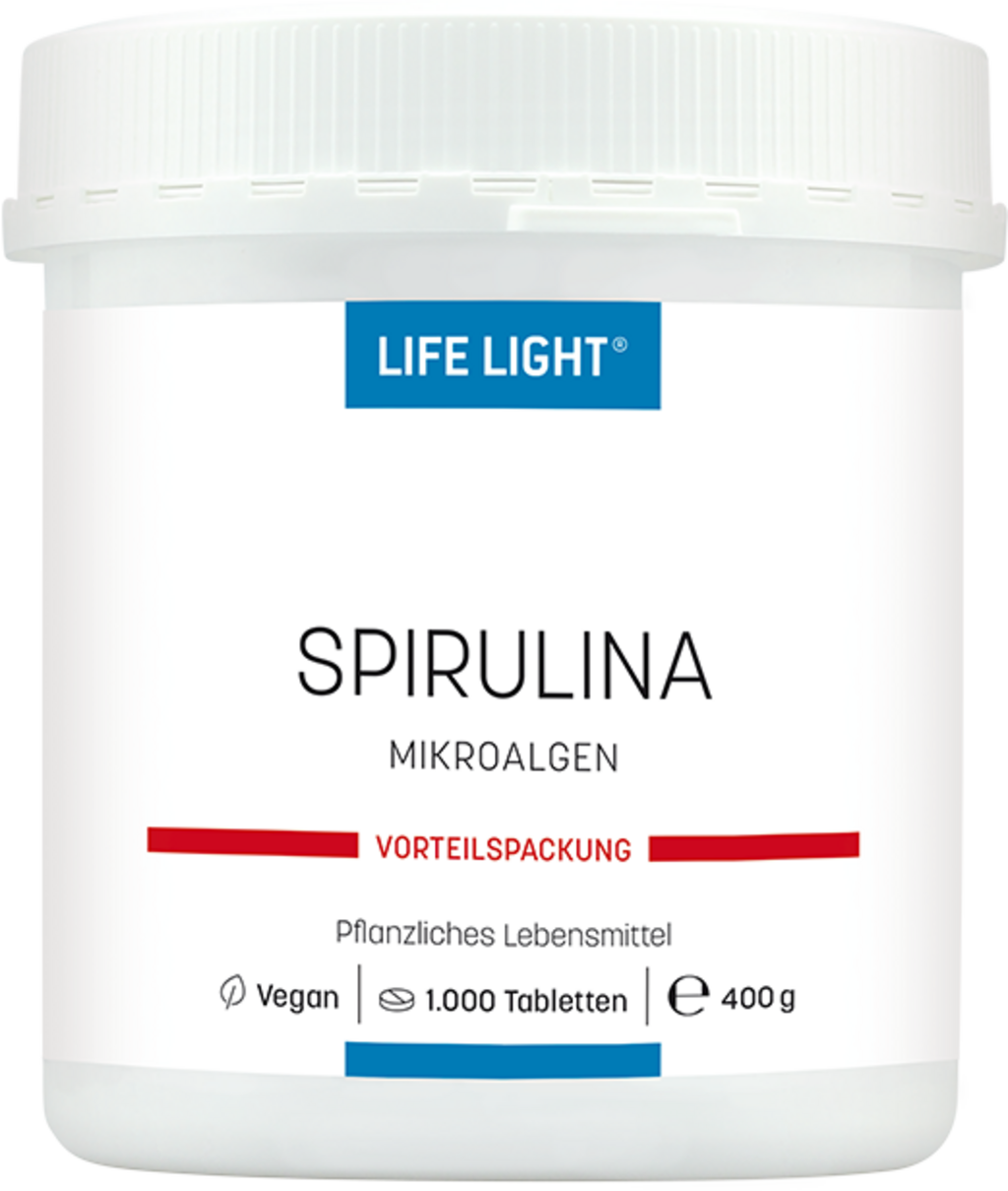 Os comprimidos de Spirulina da Life Light® contêm microalgas de água doce de alta qualidade (Spirulina platensis). São ricas em clorofila natural e são adequadas para utilização numa dieta vegetariana e vegana.