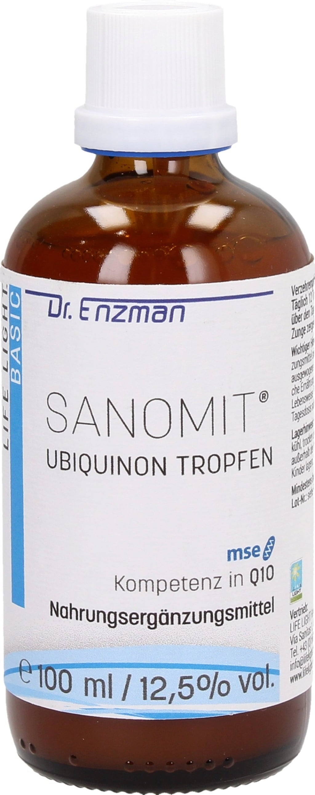 SANOMIT® contém ubiquinona Q10, também chamada coenzima Q10. SANOMIT® é um produto alcoólico especial de coenzima Q10 desenvolvido pela divisão mse MITO'MED para complementar a dieta diária. Com SANOMIT®, pela primeira vez, está disponível um produto Q10 líquido que pode ser absorvido mais rapidamente e melhor do que as preparações Q10 convencionais ou as cápsulas em pó Q10.