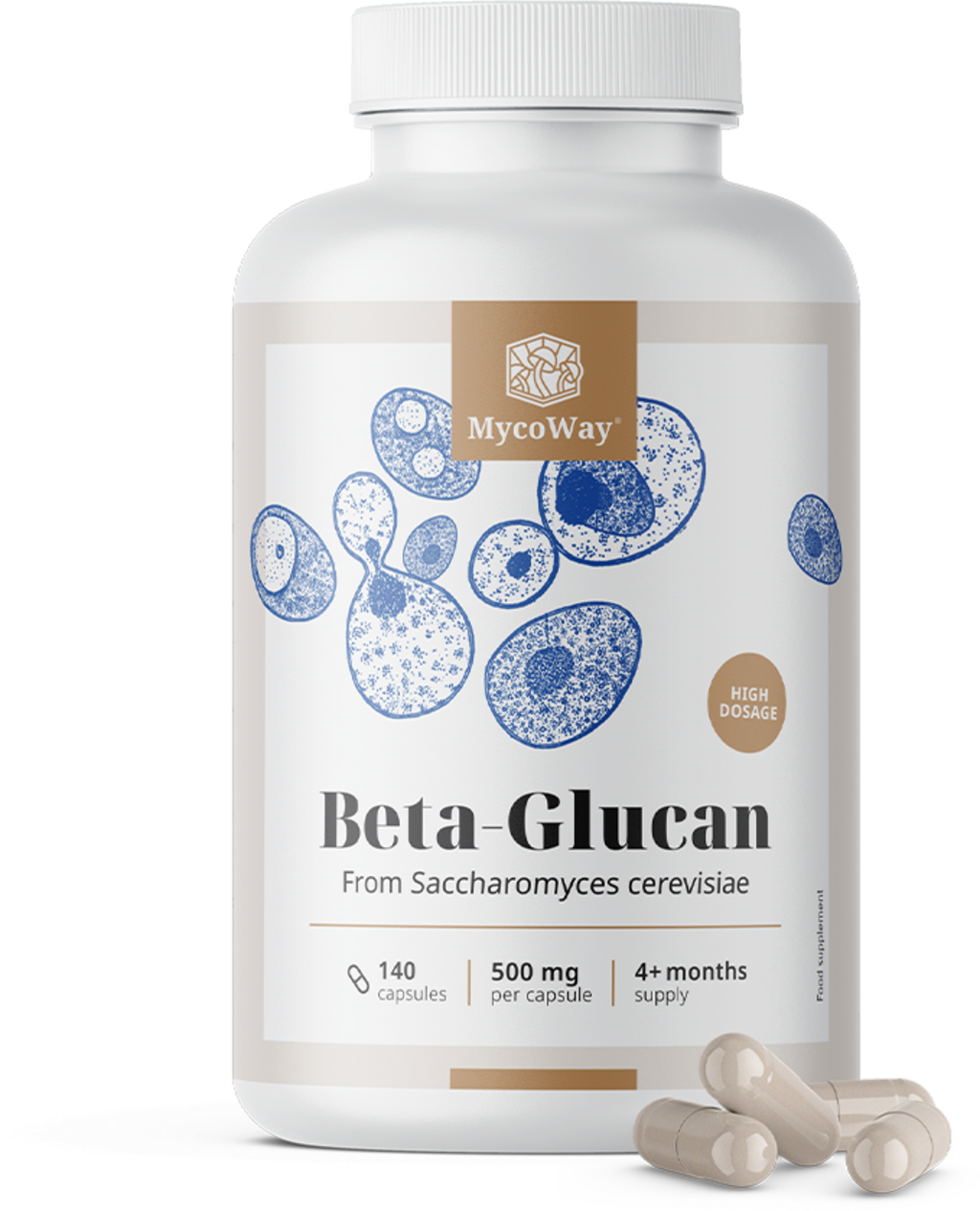 As cápsulas Beta-Glucan da MycoWay fornecem-te 500 mg de beta-glucano, obtido a partir de levedura de alta qualidade (Saccharomyces cerevisiae), uma variedade tradicional também utilizada na produção de pão e cerveja. Esta fibra alimentar polissacarídica natural é cuidadosamente processada numa cápsula prática, que pode ser facilmente integrada na tua rotina diária.