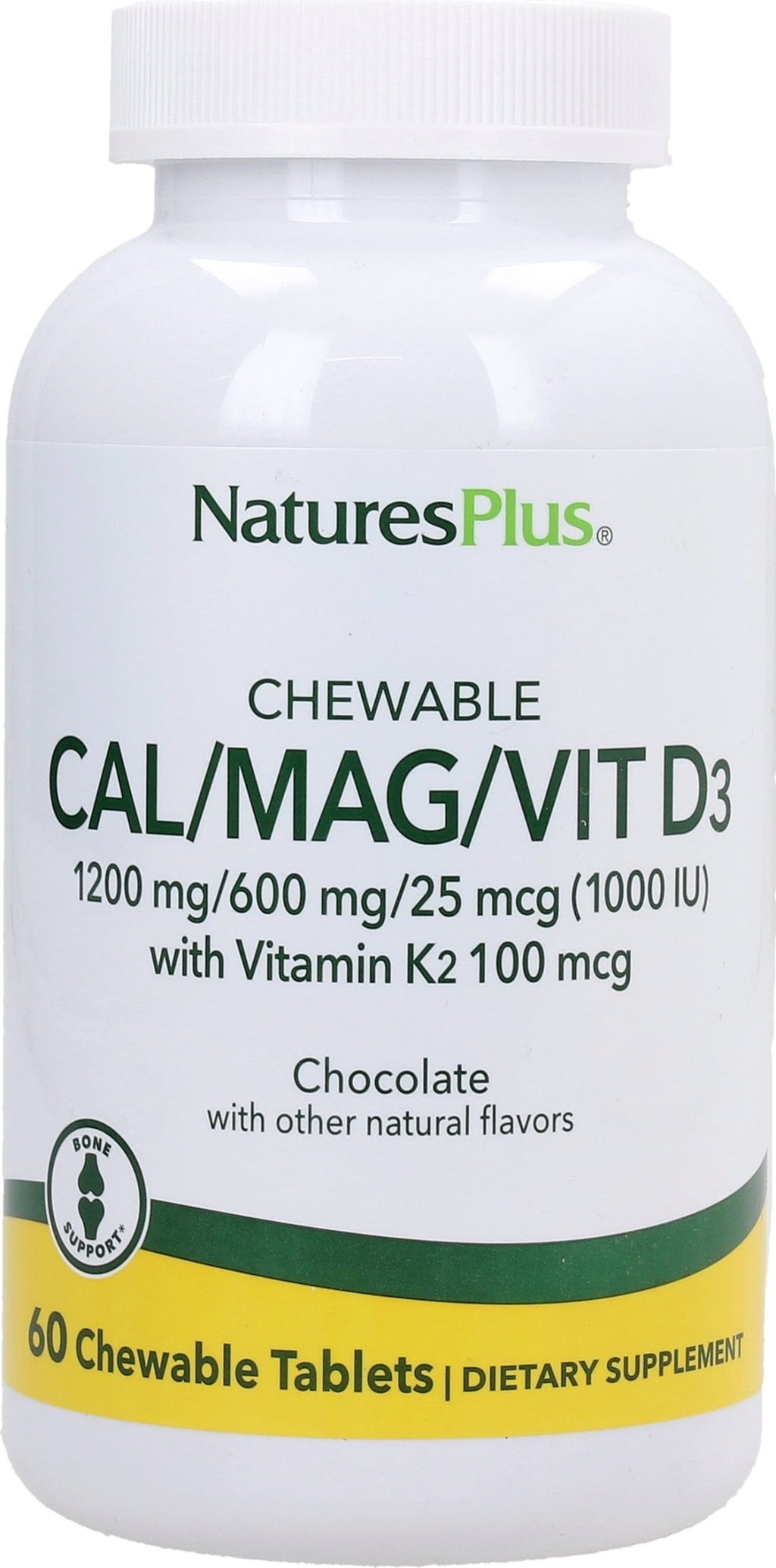 Nature's Plus Cal/Mag/Vit. D3 com Vit. K2 em Comprimidos Mastigáveis, Chocolate (60 Comprimidos mastigáveis)