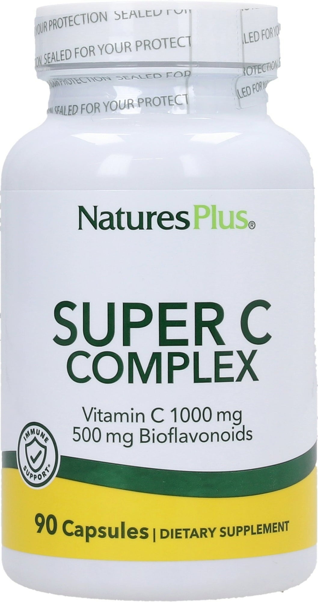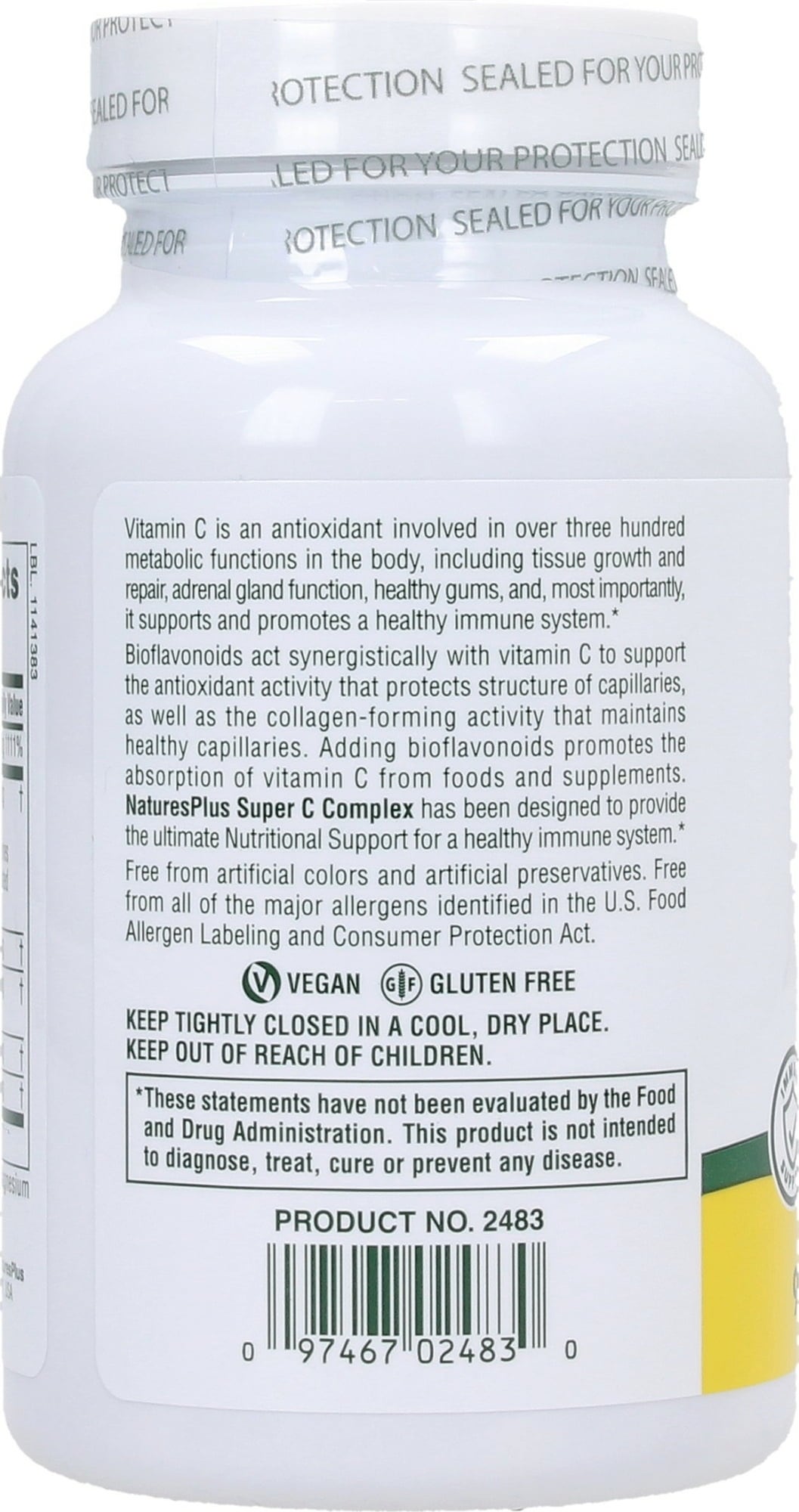 Além da vitamina C, o Super C Complex contém bioflavonoides, rutina e rosa-mosqueta, entre outros ingredientes. Produto vegetariano, hipoalergénico, livre de fermento, trigo, soja e leite.
