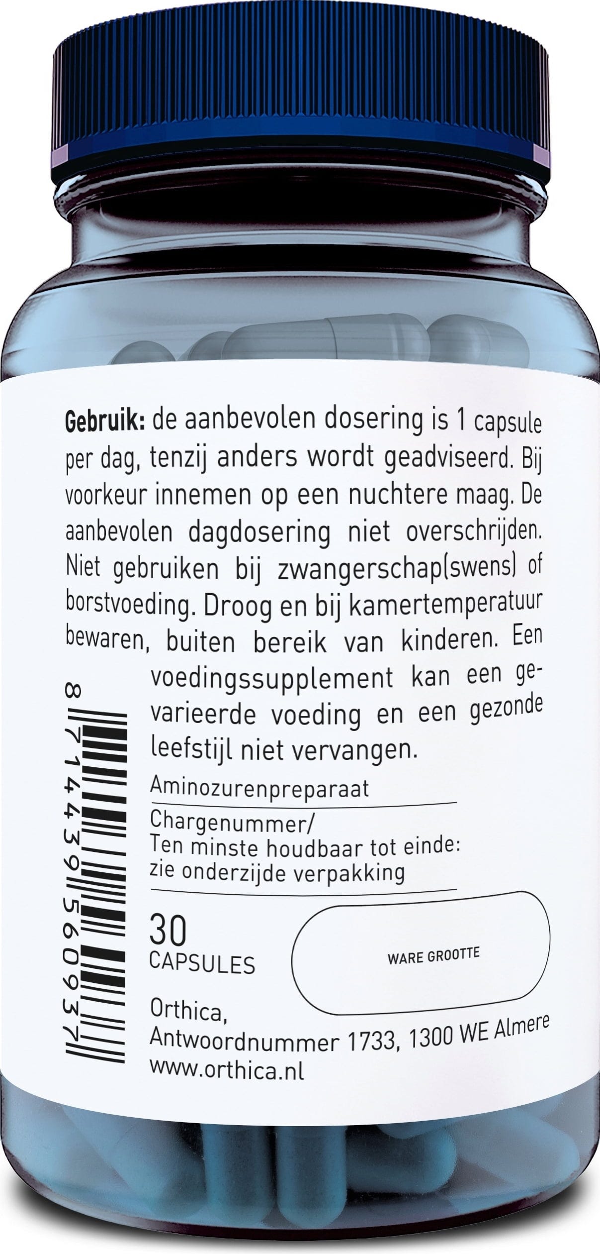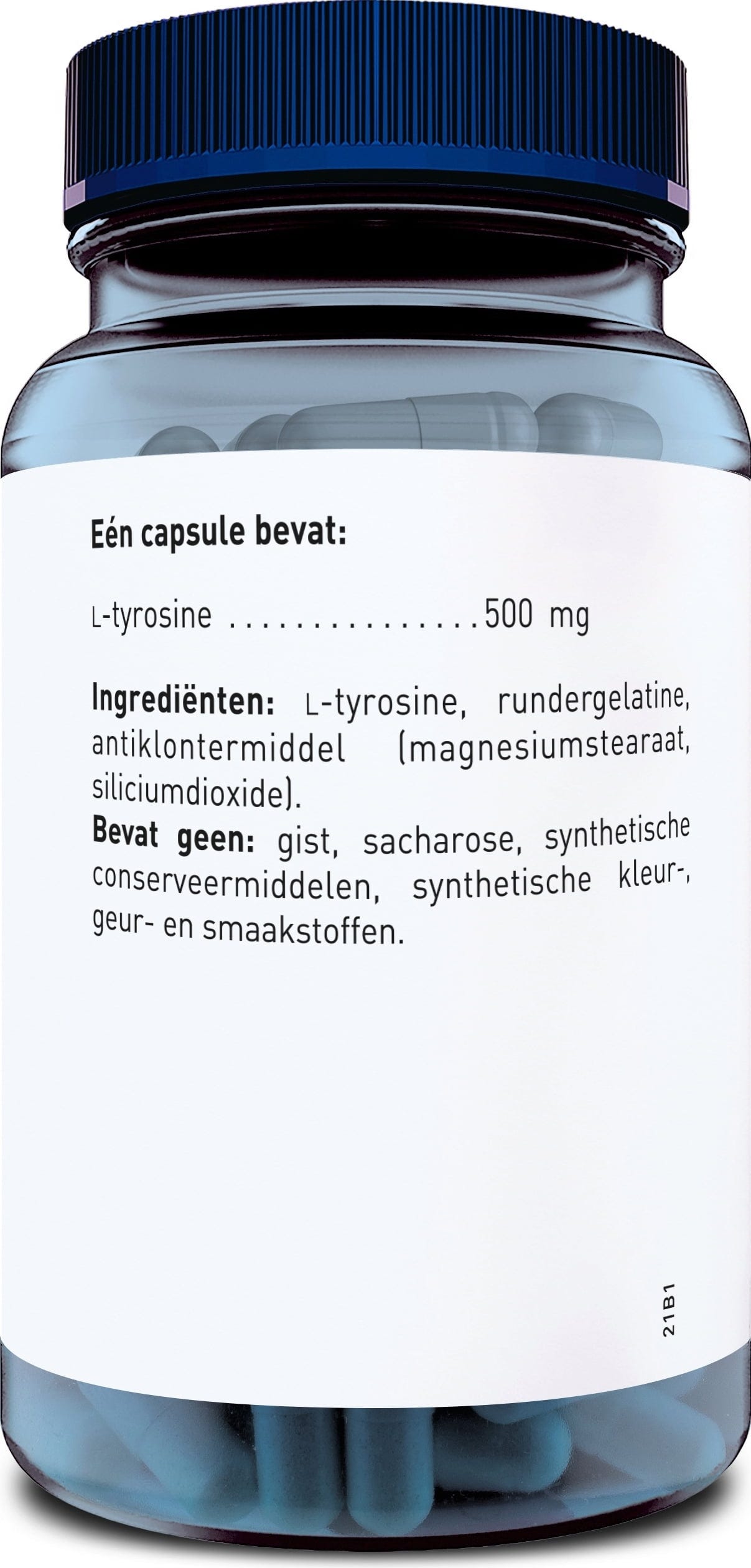 Uma cápsula contém 500 mg de L-tirosina e permite uma ingestão fácil do aminoácido.