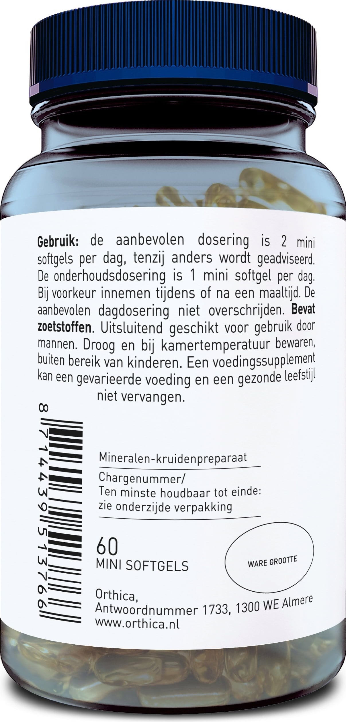 Óleo de sementes de abóbora, Extrato de Serenoa repens, Cápsula (Gelatina bovina), Gluconato de zinco, Agente gelificante (Glicerina), Lykopin Konzentrat, Gluconato de cobre (II), Estabilizador (Cera de abelha, Sorbitol), Óleo de sementes de girassol, Emulsionante (Lecitina de soja), Corante (Corante caramelo), Metionina de selénio
