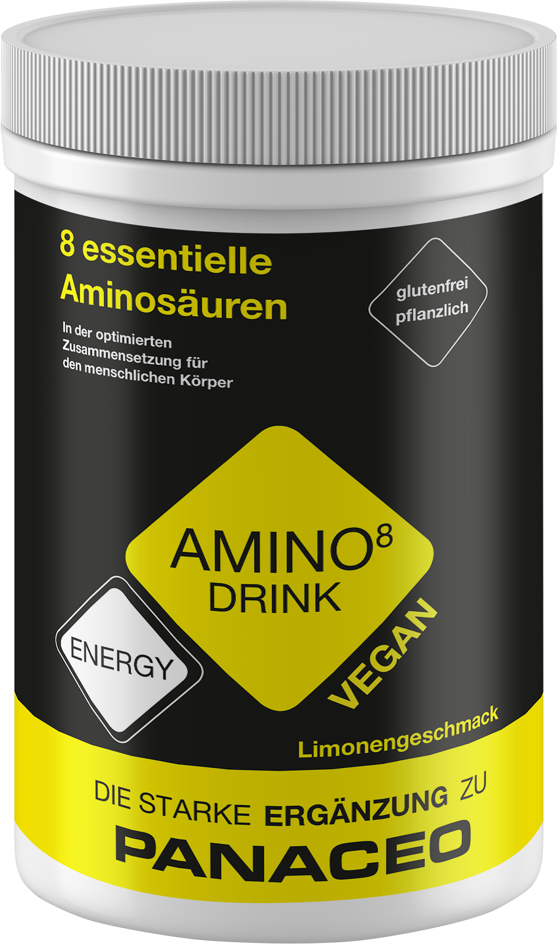 Potência total graças ao Energy Amino⁸ da Panaceo. Esta bebida de aminoácidos contém todos os 8 aminoácidos essenciais, que são compostos de forma ideal de acordo com os critérios reconhecidos do MAP (Master Amino Pattern). Isto garante a melhor biodisponibilidade possível. O produto não contém ingredientes de origem animal e, portanto, também é adequado para uma dieta vegetariana ou vegana.