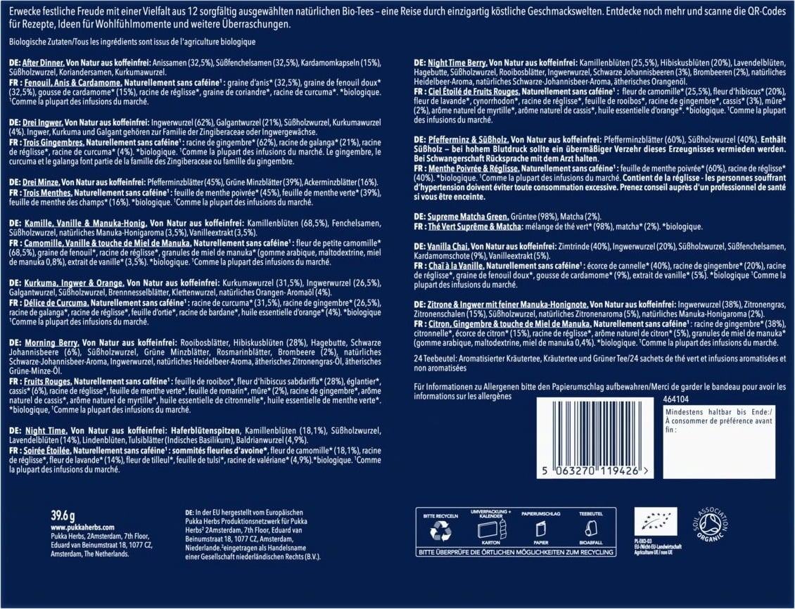 | Fabricante: | Lipton Teas and Infusions Germany GmbH, Axel-Springer-Platz 3, c/o WeWork, 20355, Hamburg, Alemanha, kontakt@pukkaherbs.de |