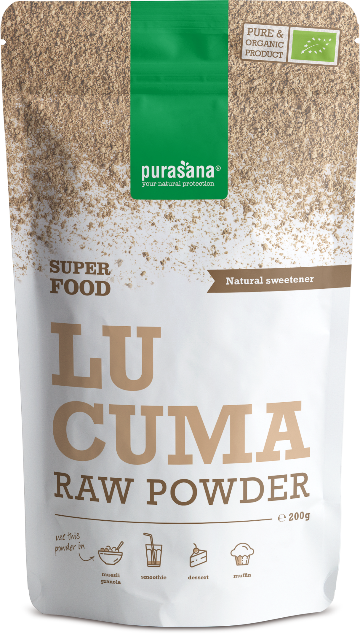 O pó de lucuma é obtido a partir do fruto seco e moído da árvore de lucuma, nativa da região dos Andes. A fruta também é chamada de ouro dos Incas. Contém naturalmente açúcar, vitaminas do complexo B, minerais e compostos secundários de plantas.