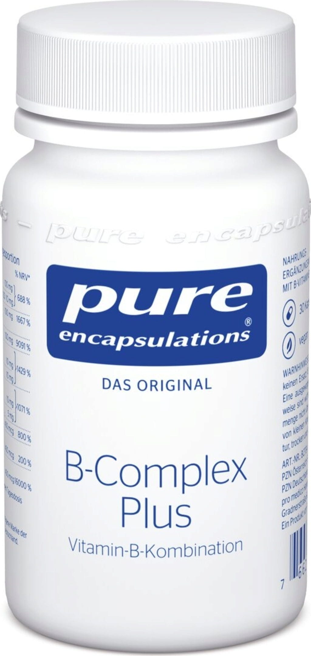 - O B-Complex Plus da Pure Encapsulations® é vegano, idealmente dosado em cápsulas e contém vitaminas do complexo B em sua forma ativada!