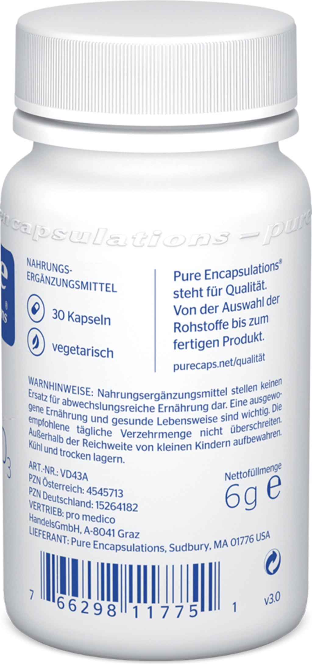 pure encapsulations Vitamina D3 4000 U.I., 30 Cápsulas