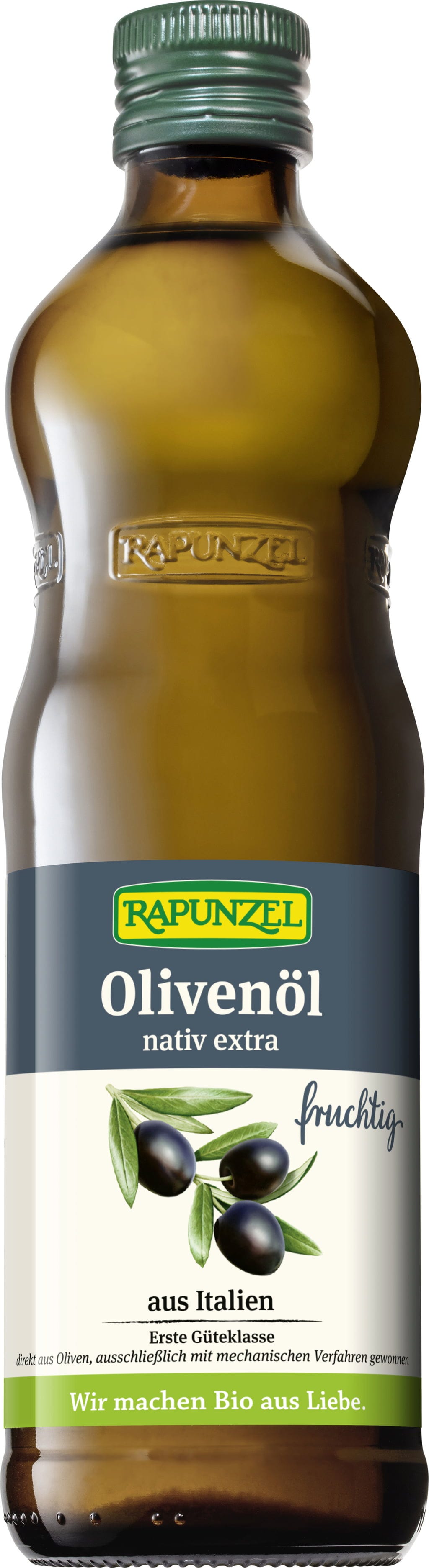 Nota: As azeitonas foram prensadas a baixas temperaturas através de processos mecânicos, pelo que este azeite pode ostentar a designação de qualidade "extra virgem" e destaca-se pelo seu elevado teor de ácidos gordos insaturados. As azeitonas provêm de agricultura biológica italiana.