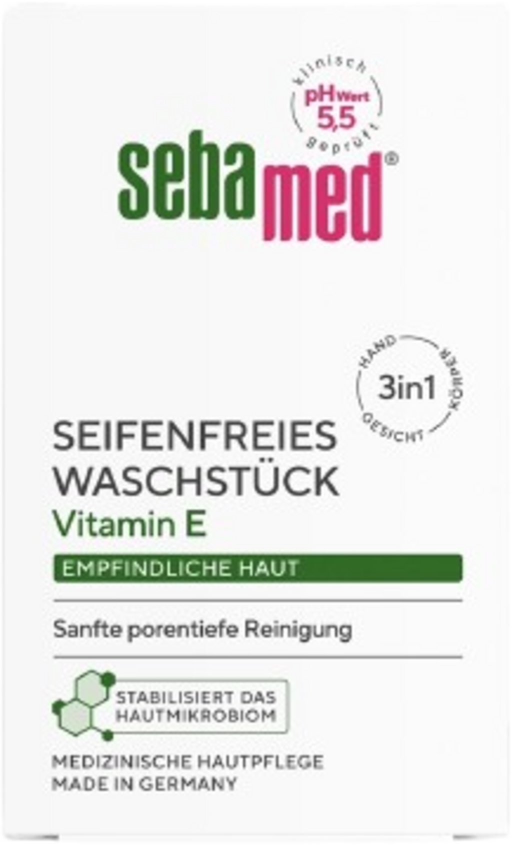O produto de limpeza sem sabão da sebamed é ideal para peles sensíveis e problemáticas. Os ingredientes de limpeza baseiam-se em aminoácidos naturais, em combinação com polifrutosano natural, pantenol e vitamina E. Graças ao valor de pH de 5,5, a barra de limpeza limpa a pele de uma forma particularmente suave e dá-lhe uma sensação de frescura e conforto.