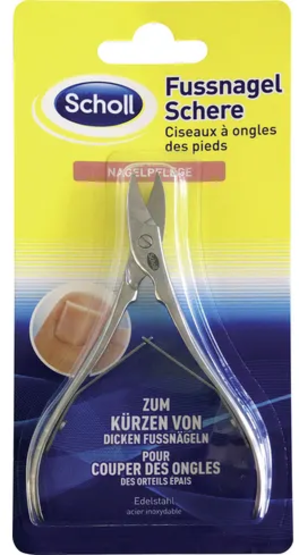A tesoura de unhas Excellence da Scholl combina a nitidez de uma tesoura de unhas com a força de um alicate. O cabo ergonómico assenta confortavelmente na mão e torna o encurtamento de unhas grossas sem esforço. É necessária menos força graças à mola dupla.