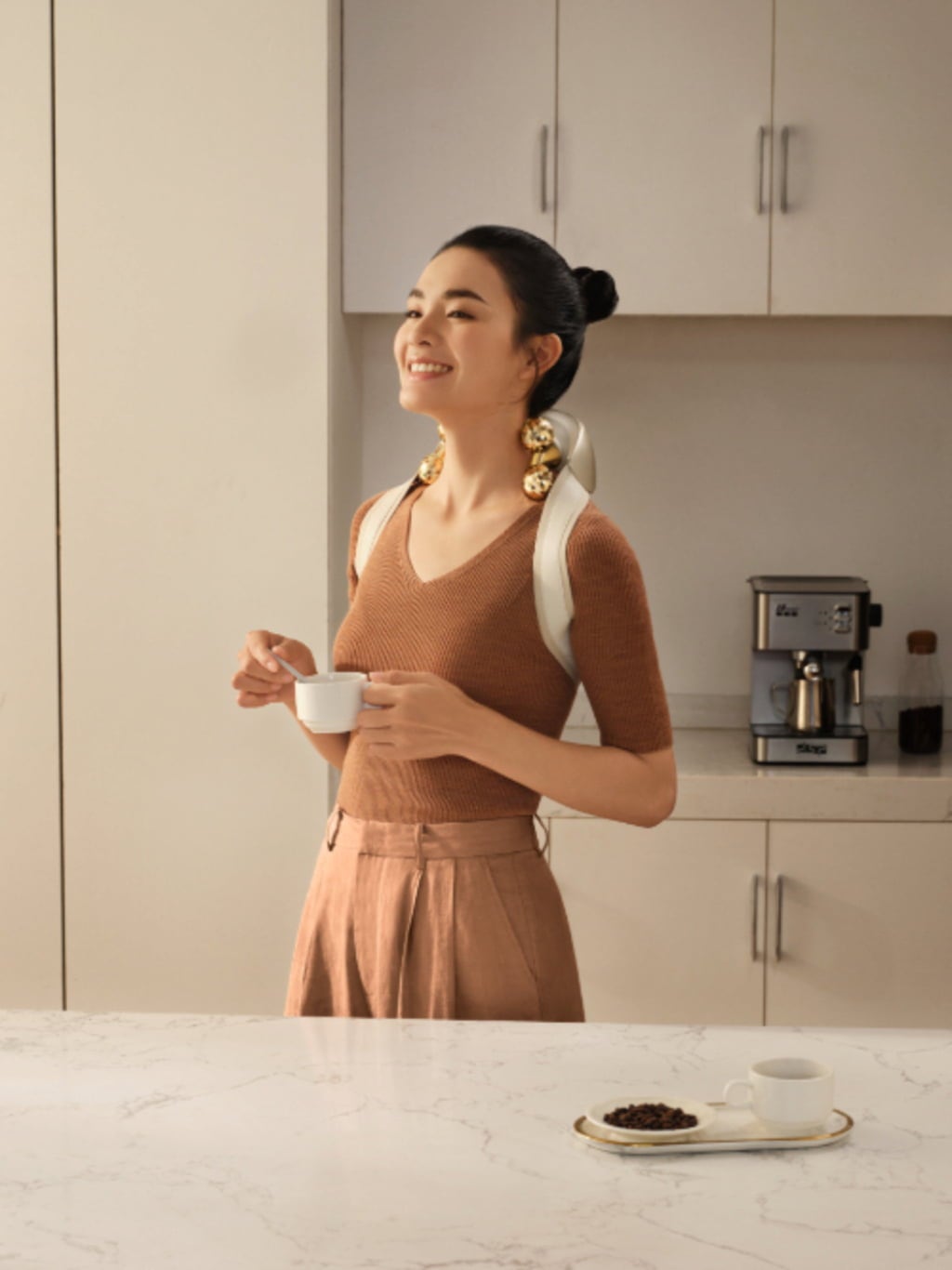 O SKG H7 Ultra-E oferece-te uma seleção abrangente de opções de aplicação mecânica para a zona do pescoço, ombros e nuca. Podes alternar de forma flexível entre diferentes modos, como massagem de compressão, amassamento e vibração, ajustando a intensidade exatamente às tuas necessidades do momento. Graças ao design ergonómico, o dispositivo adapta-se com precisão à anatomia do corpo e permite uma aplicação de pressão localizada sobre a musculatura.