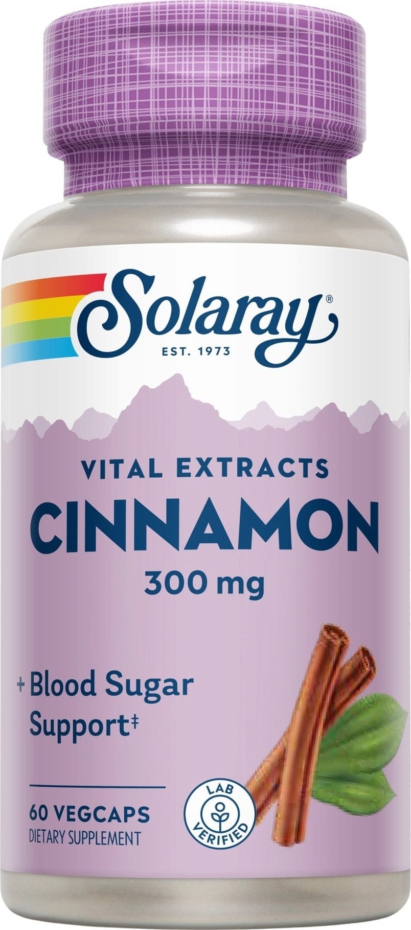 Solaray oferece com Cinnamon 300 mg de extrato de casca de canela e 150 mg de casca de canela do Ceilão.