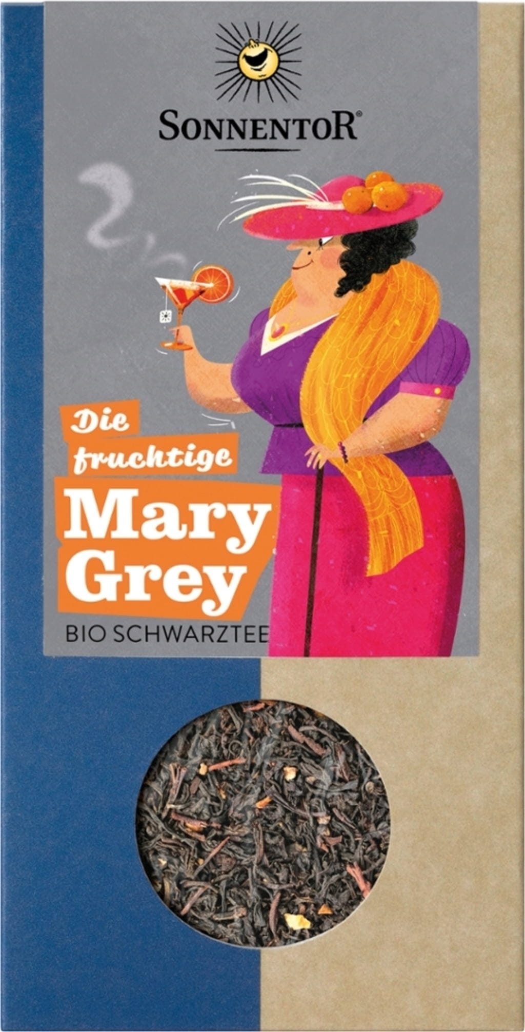 Com a Mary Grey a percorrer as ruas! Este chá-preto Bio da Índia é aparentado com o Earl Grey, mas tem um sabor mais frutado: foi refinado com laranja sanguínea, cascas de limão e óleo essencial de laranja. Precisas frequentemente de um impulso de frescura à tarde? Com uma chávena de Mary Grey, o mundo parece logo mais fresco — e tu também.