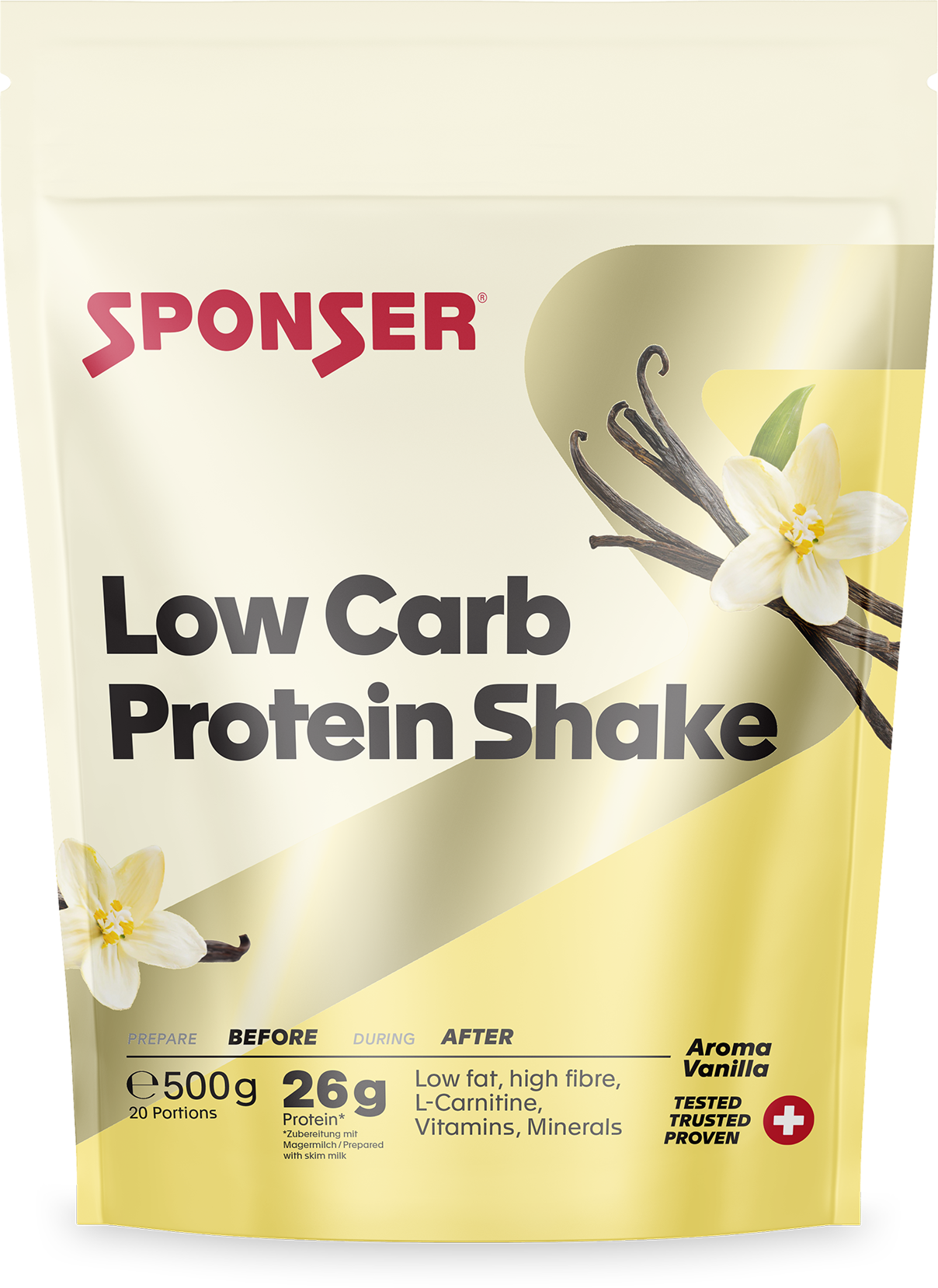 O Sponser Low Carb Protein Shake baseia-se numa combinação de proteína de soro de leite, proteína do leite e proteína de ovo, alcançando assim um elevado valor biológico. A proteína presente contribui para a manutenção e o aumento da massa muscular, sendo particularmente importante durante fases de redução calórica. A fórmula é ainda enriquecida com colina, que contribui para um metabolismo normal das gorduras, e contém fibras alimentares valiosas. Uma porção preparada com leite magro cobre já cerca de um terço das necessidades diárias de dez vitaminas importantes. Este batido pode ser facilmente integrado no teu dia a dia como parte de uma refeição, em combinação com fruta, legumes ou saladas.