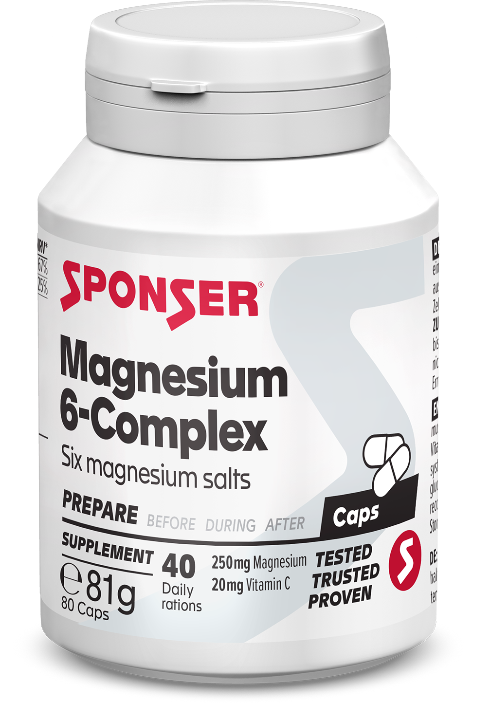 O Sponser Magnesium 6-Complex oferece uma combinação de alta qualidade de diferentes sais de magnésio orgânicos, como citrato, gluconato, bisglicinato e ascorbato. Esta seleção permite uma absorção ideal do mineral, que contribui para o funcionamento normal dos músculos, para um metabolismo energético normal e para o equilíbrio eletrolítico. Além disso, o magnésio presente ajuda a reduzir o cansaço e a fadiga. A fórmula é complementada com vitamina C, que contribui para a proteção das células contra o stress oxidativo.