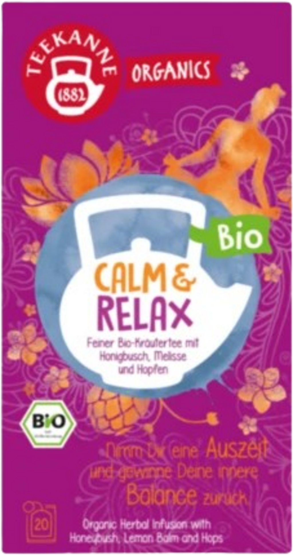 Quando o dia a dia se torna especialmente agitado, não sabes por onde começar e os pensamentos andam em círculos: diz conscientemente “STOP” e faz uma pausa com TEEKANNE Organics Calm & Relax! A mistura de chá contém ervas biológicas como lúpulo, melissa e erva-príncipe. Alcaçuz, honeybush e folhas doces de amora conferem ao chá uma doçura subtil e natural.