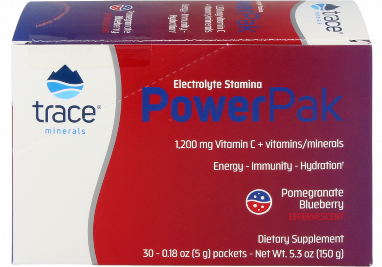 Trace Minerals Research Power Pak Eletrólitos Stamina & Vitamina C, Mirtilo-romã (30 Sacos)