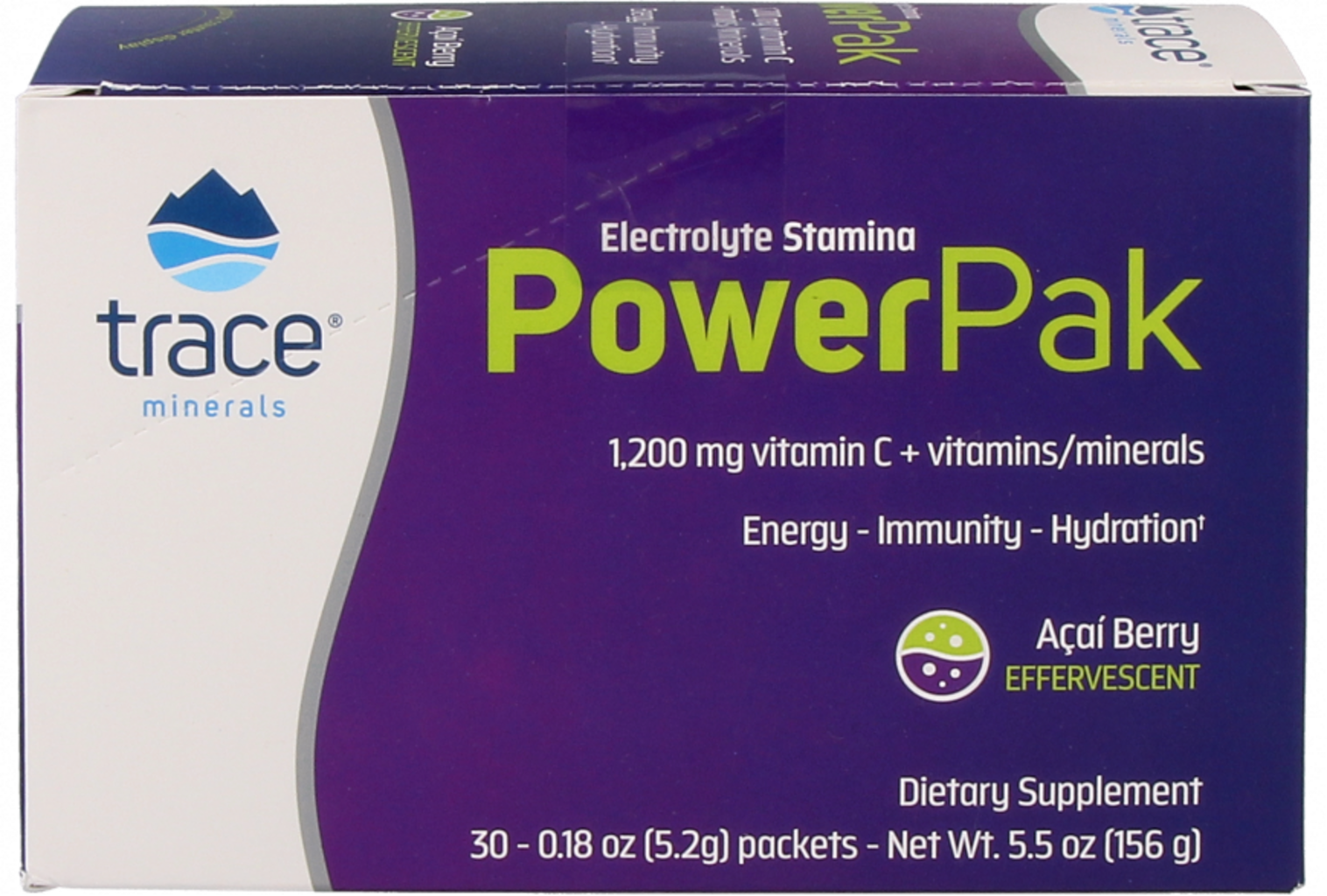 Trace Minerals Research Power Pak Eletrólitos Stamina & Vitamina C, Açaí (30 Sacos)