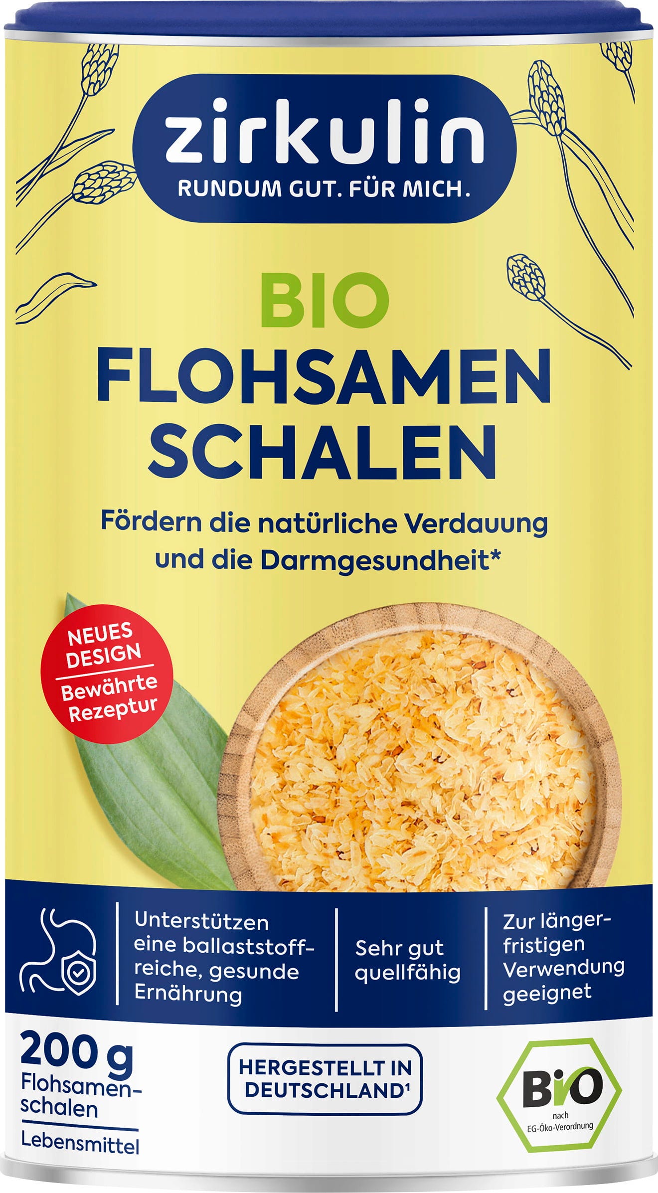 As cascas de sementes de psílio indiano (Plantago ovata) são ricas em fibras solúveis e são altamente expansíveis. Têm a capacidade de se ligar muitas vezes ao seu peso em líquidos. As cascas de psílio zirkulin orgânicas têm um sabor neutro e são também adequadas para uma utilização a longo prazo.
