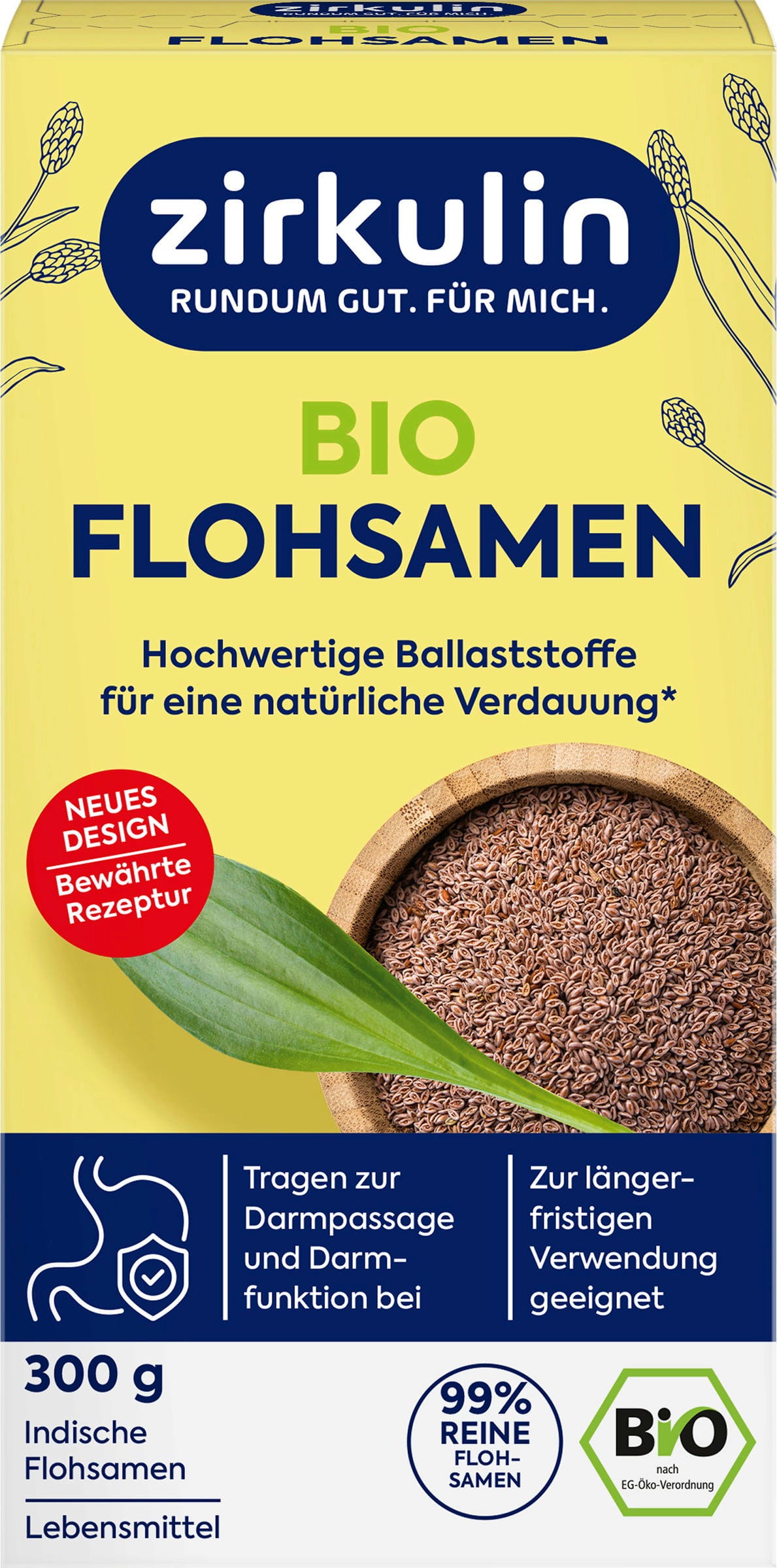 As cascas de psílio têm a propriedade de se poderem ligar muitas vezes o seu próprio peso em líquido. As sementes de psílio orgânicas de zirkulin podem ser utilizadas a longo prazo sem qualquer problema.